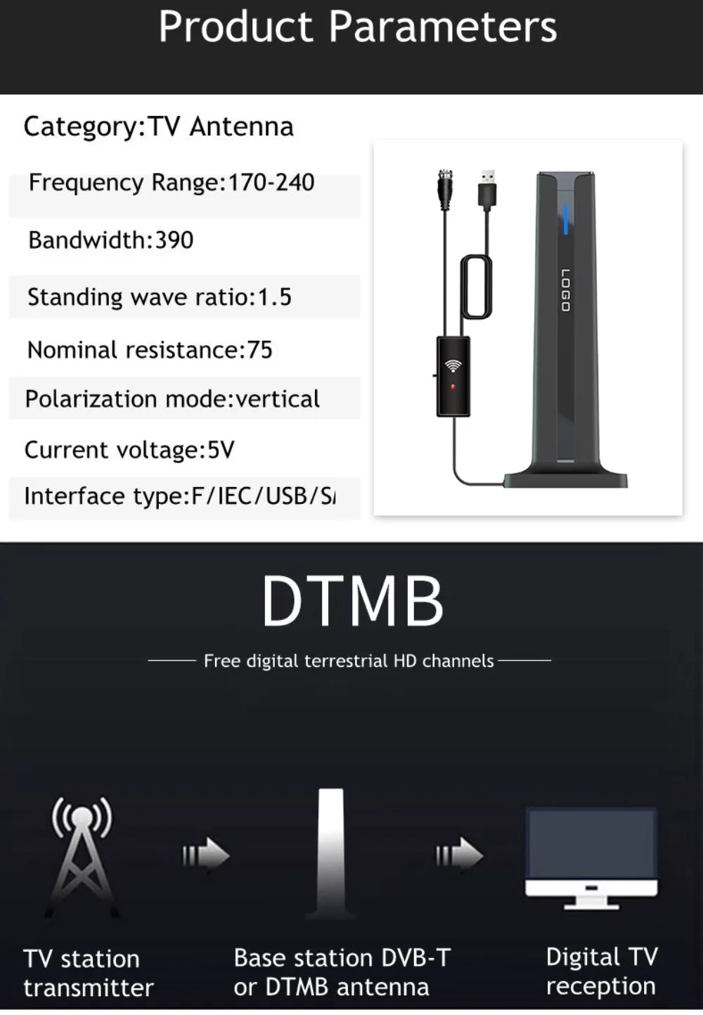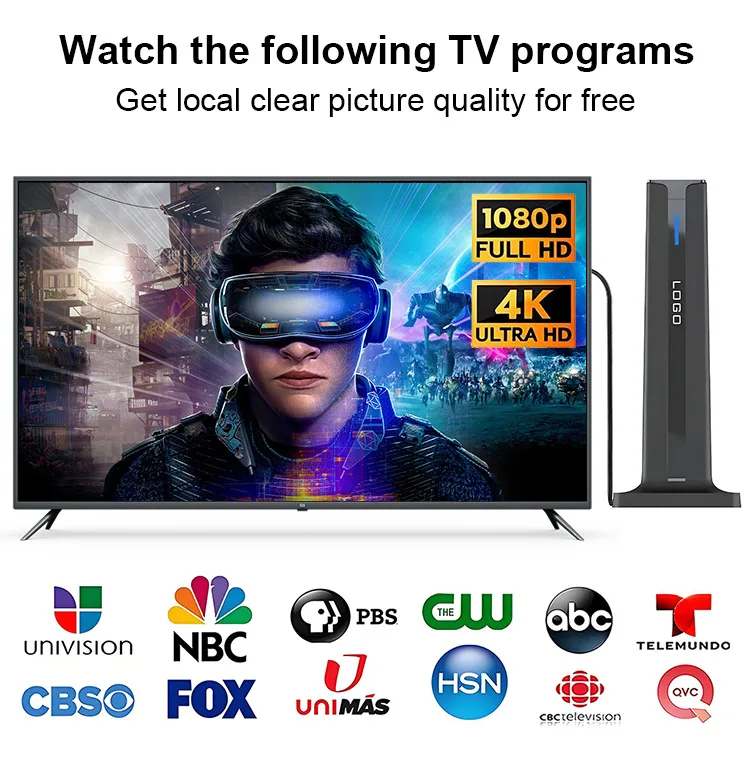 6000 Milhas Antena Digital 36DBI para Smart TV Interior com Base 3M-Stick, Receção 360°&Long Range 4k 1080p para Canais Locais