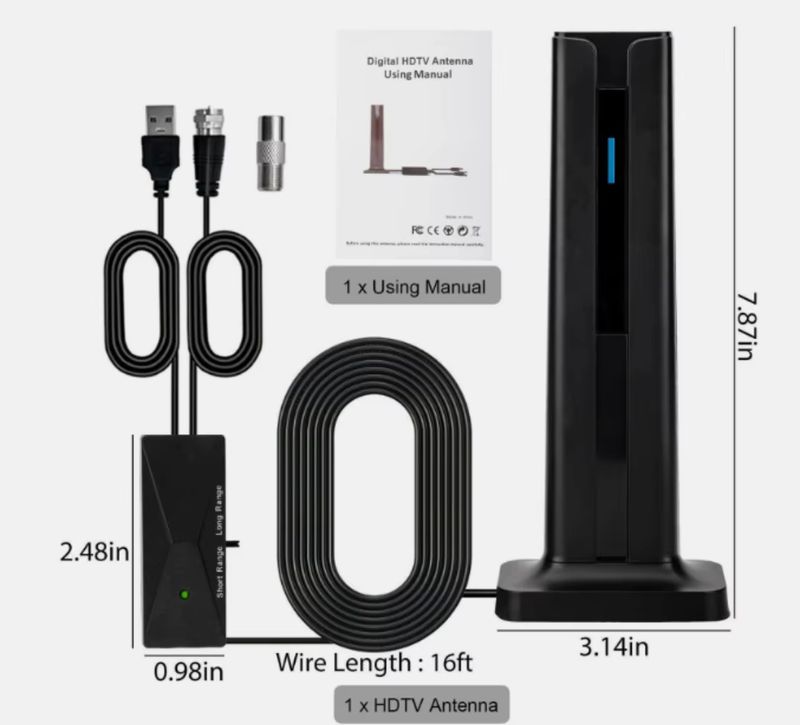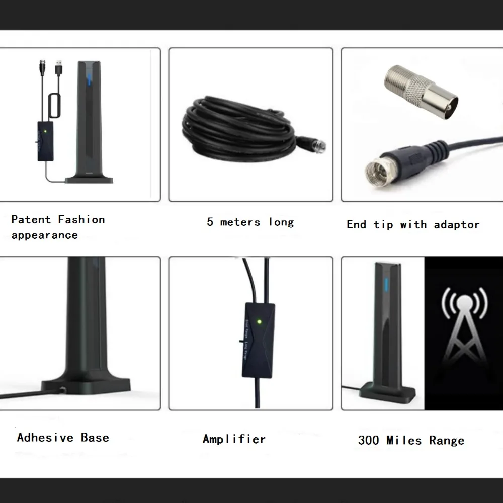 6000 Milhas Antena Digital 36DBI para Smart TV Interior com Base 3M-Stick, Receção 360°&Long Range 4k 1080p para Canais Locais