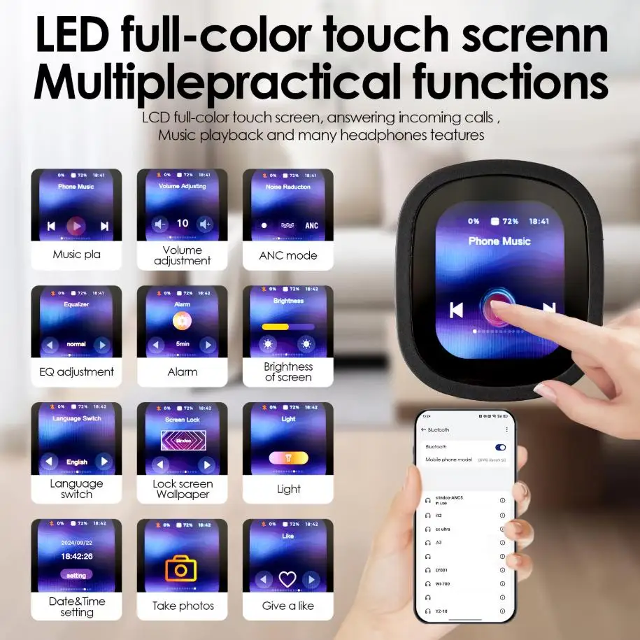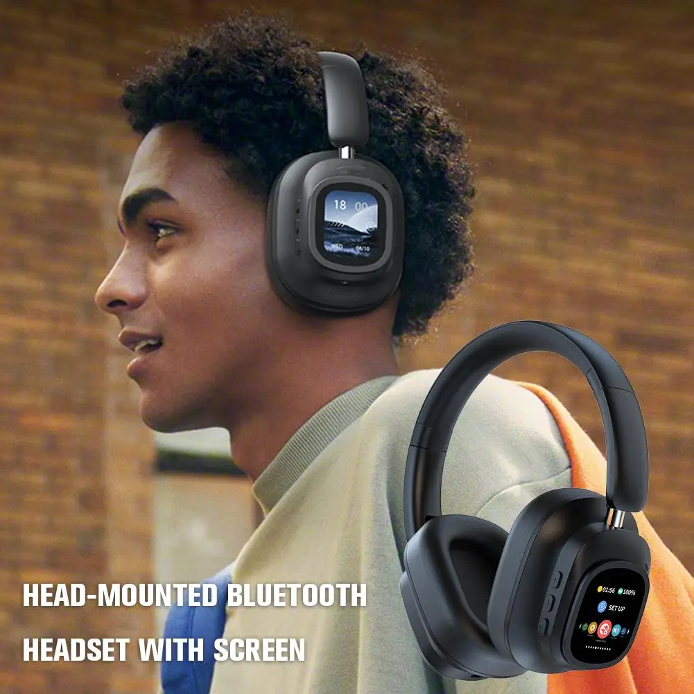 Fones de ouvido sem fio com tela sensível ao toque, display LCD, função de carregamento, função de redução de ruído e graves profundo